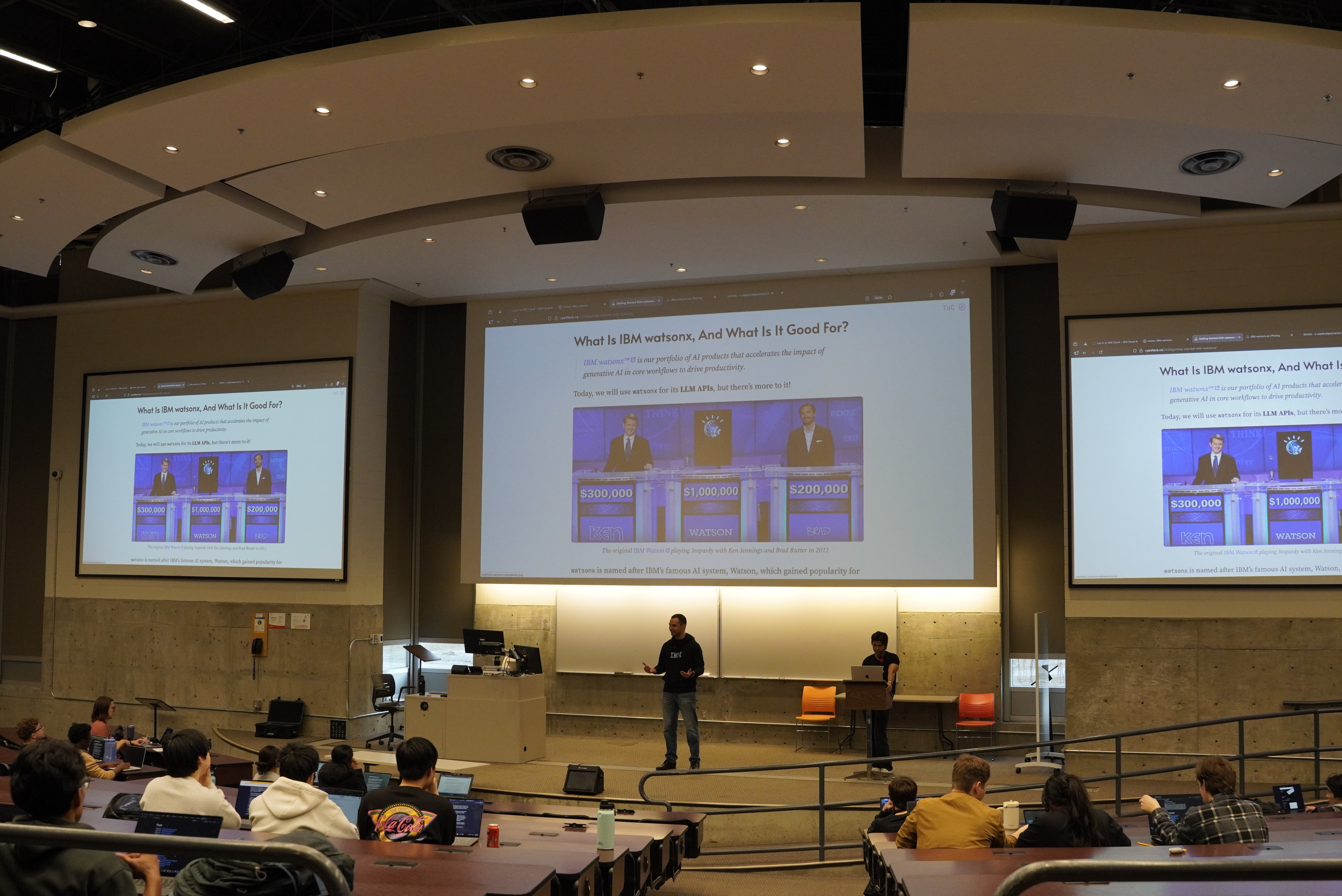 Shad and I ran a workshop on building AI Agents with IBM watsonx.ai for the students, attempting to teach the basic tools required to inference with IBM’s foundation models (LLMs) and build tool-calling agents in Python.