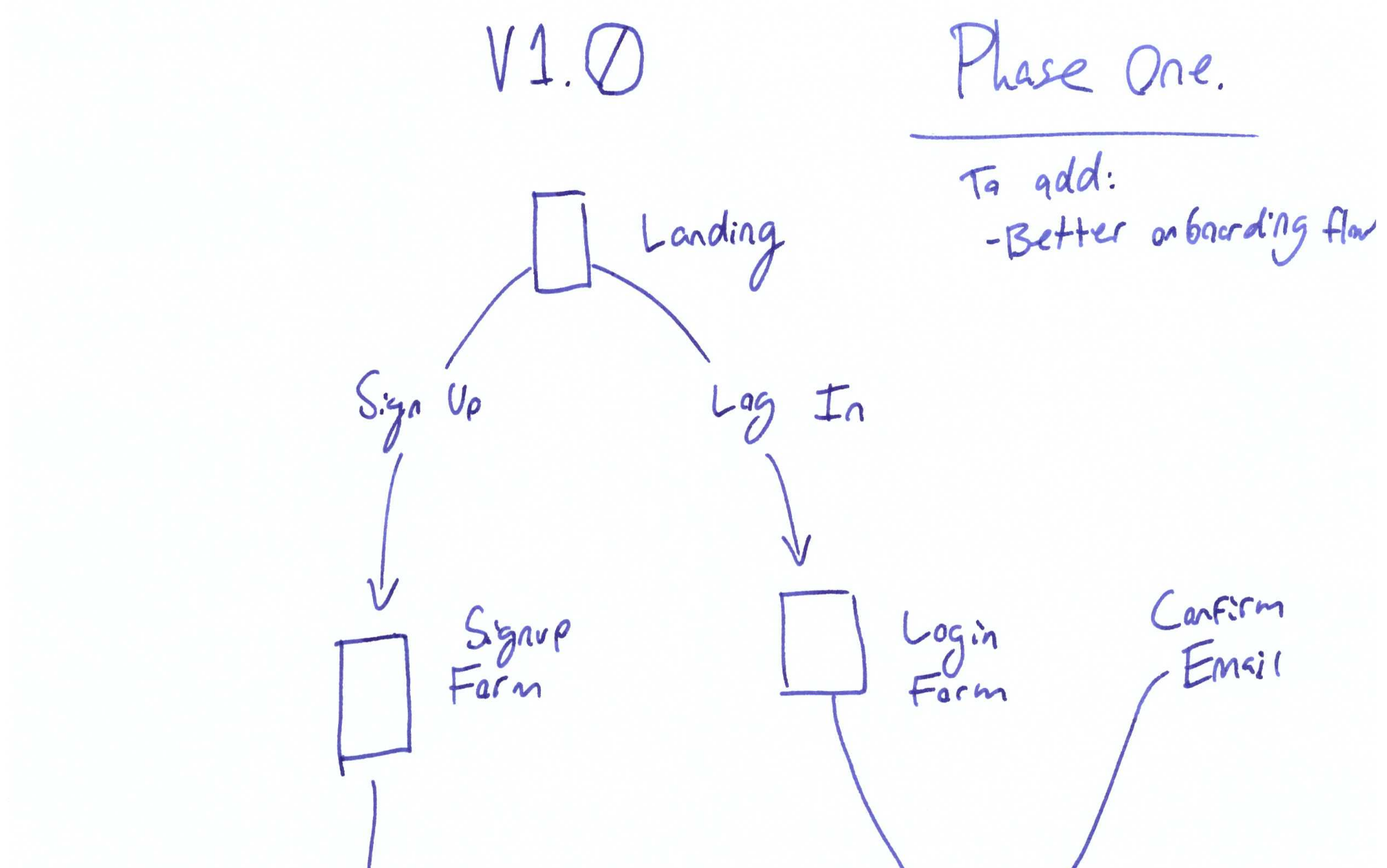 Here was the third or fourth draft of our user view flowchart, which was relatively close to what we would ultimately implement, though with a few additional pages missing. We were attempting to design an MVP: